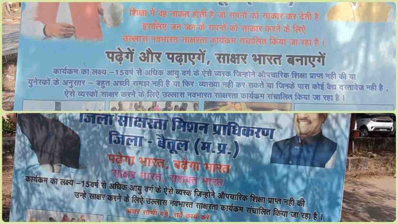 Betul Literacy Mission Hoarding Mistakes: कलेक्ट्रेट में साक्षरता मिशन के होर्डिंग्स में थोकबंद गलतियां, भाषा ज्ञान पर उठे सवाल