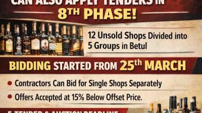 Betul Liquor Shop Tender 8th Phase: बैतूल (राष्ट्रीय जनादेश)। शराब दुकानों की नीलामी प्रक्रिया में जिले में अनसोल्ड रही १२ शराब दुकानों के ५ ग्रुप बनाए गए हैं, लेकिन आठवें...