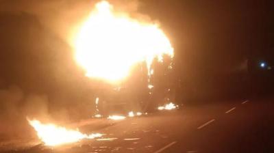 सीहोर: वेयरहाउस में खड़े ट्रक में लगी भीषण आग, दमकल की फुर्ती से बचा बड़ा हादसा