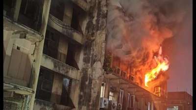 चार मंजिला इमारत बनी आग का गोला, दमकल कर्मियों ने कई घंटों तक किया संघर्ष