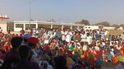 विस्थापन और मुआवजे की मांग पर किसानों-आदिवासियों का धरना