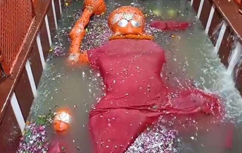 मां गंगा के श्री बड़े हनुमान मंदिर में तीसरी बार पहुंचने पर महंत बलवीर गिरि महाराज ने विधि विधान से वैदिक मंत्रोच्चारण के बीच पूजन अर्चन किया। इसके बाद हनुमानजी की आरती की गई। ऐसा पहली बार हुआ है जब पवित्र श्रावण माह में तीन बार श्री बड़े हनुमानजी का जल शयन हुआ है। मंदिर में गंगा जी के प्रवेश करते ही जयकारे गूंजने लगे।