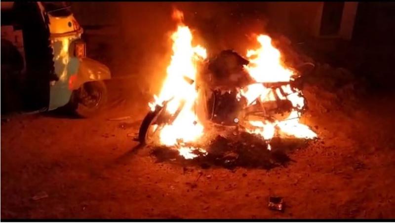 बाइकों में लगाई गई आग