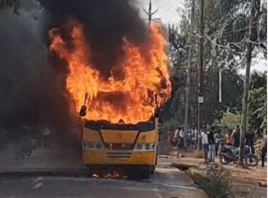 इंदौर हादसा: स्पार्क से धधकी स्कूल बस, कुछ ही मिनटों में आग ने लिया भीषण रूप, बच्चों को समय पर निकाला गया
