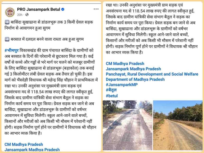 इस सड़क का निर्माण मुख्यमंत्री ग्राम सड़क एवं अवसंरचना मद से 118.54 लाख रुपये की लागत से हुआ है। इस 3 किलोमीटर ग्रेवल सड़क निर्माण का कार्य आरईएस विभाग द्वारा कराया गया है। रविवार को जनसंपर्क विभाग के आधिकारिक पेज पर इस सड़क की जानकारी जब लोगों ने देखी तो उन्होंने हकीकत का पता लगाने खुद ही सड़क का मुआयना करने का निर्णय लिया। वे जब मौके पर पहुंचे और निरीक्षण किया तो निर्माण की स्थिति विभागीय दावों के बिल्कुल विपरीत मिली। इसके बाद सड़क की गुणवत्ता को लेकर ग्रामीणों ने गंभीर आरोप लगाए हैं।