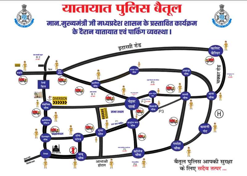- पी-5: शाहपुर ब्लॉक की कारें न्यू बैतूल ग्राउंड अवस्थी गोदाम के पास पार्क होंगी।
