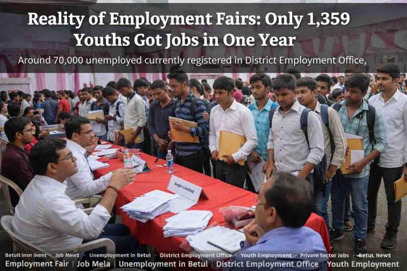Employment Fair Jobs: बैतूल (राष्ट्रीय जनादेश)। समय-समय पर रोजगार मेलों का आयोजन कर युवाओं को रोजगार मुहैया कराने के दावें जरुर किए जाते हैं, लेकिन इन मेलों के जरिए गिने-चुने युवाओं को ही रोजगार मिल पाता है। बीते एक साल की यदि स्थिति देखे तो मात्र 1359 युवाओं को ही निजी क्षेत्र में नौकरी मिल सकी है। यह बात अलग है कि इसमें से भी कुछ लोग छोड़ चुके होंगे।