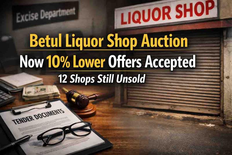 Betul Liquor Shop Auction: शराब दुकानों की नीलामी में राहत: अब 10% कम ऑफर भी होंगे स्वीकार, 12 दुकानें अब भी अनसोल्ड