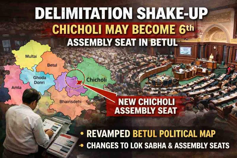 delimitation betul assembly seat: बैतूल (राष्ट्रीय जनादेश)। केंद्र सरकार के 2029 लोकसभा चुनाव के पहले महिला आरक्षण लागू करने और 2011 की जनगणना के आधार पर परिसीमन कराए जाने के उठाए जाने वाले कदम की आहट से देश की राजनीति अचानक गर्मा गई है। पहले उम्मीद की जा रही थी कि 2027 में पूरी होने वाली जनगणना के बाद परिसीमन किया जाएगा। अचानक केंद्र सरकार की तरफ से 33 प्रतिशत महिला आरक्षण और परिसीमन को लेकर दिए गए बयान ने खलबली मचाकर रख दी है। परिसीमन को लेकर केंद्रीय गृह मंत्री अमित शाह विपक्षी दलों के साथ लगातार बैठक भी कर रहे हैं। नया लोकसभा भवन बनने के बाद उम्मीद की जा रही थी कि देश में लोकसभा सीटों की संख्या बढ़कर 816 तक पहुंच सकती है। महिला आरक्षण 33 प्रतिशत होने के बाद महिला सांसदों की संख्या भी 273 तक पहुंचने की संभावना है। 2011 की जनसंख्या के आधार पर होने वाली इस परिसीमन से स्वाभाविक तौर बैतूल भी प्रभावित होगा। राजनीति के जानकारों का मानना है कि बैतूल में 5 के स्थान छटवीं विधानसभा चिचोली हो सकती है। वहीं बैतूल लोकसभा क्षेत्र में से हरदा-टिमरनी और हरसूद कट जाएगा। यह सब होने से जिले का राजनैतिक भूगोल भी बदल जाएगा। इसके साथ ही 2028 और 2029 में क्रमश: विधानसभा और लोकसभा चुनाव में समीकरण भी बदल जाएंगे।