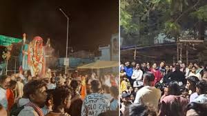 मध्य प्रदेश के डिंडौरी में शनिवार रात एक धार्मिक आयोजन के दौरान अचानक माहौल बिगड़ गया। माता काली की प्रतिमा के विसर्जन के लिए निकले जुलूस में कुछ अज्ञात लोगों ने ऐसी हरकत कर दी, जिससे पूरे इलाके में तनाव फैल गया।