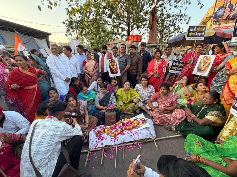 गैस सिलेंडर महंगाई पर दुर्ग में कांग्रेस का प्रदर्शन