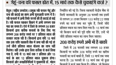 Kharif Loan Zero Interest Scheme: बैतूल(राष्ट्रीय जनादेश)। सहकारी बैंकों से खरीफ फसलों के लिए खाद, बीज सहित नगद राशि लेने वाले किसानों को अब 28 मार्च तक राशि जमा करने पर...
