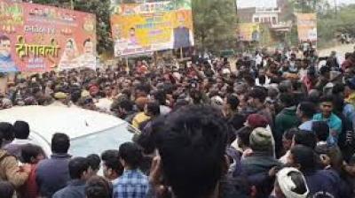 चित्रकूट में व्यापारी के बेटे का शव बाजार में रखकर हंगामा, आरोपियों का सामान जलाया