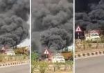 रोड मार्किंग मशीन में जोरदार ब्लास्ट, इलाके में मचा हड़कंप