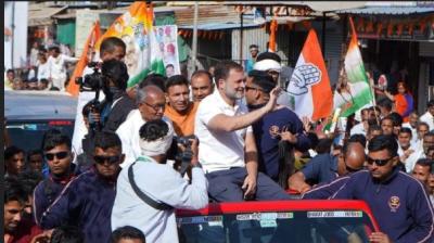 खुली जीप में सवार हो राहुल गांधी ने किया रोड शो